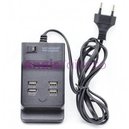 Acest incarcator de la 220V la priza USB dispune de 4 porturi, 2 prize usb cu tensiune de 5V-2A si